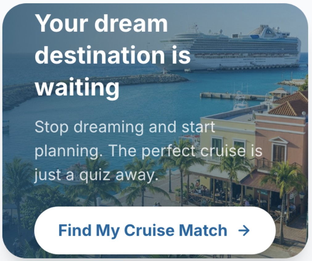 Stop guessing which cruise line, ship, or cabin is right for you. Answer 10 quick questions and get a personalized match — so you can book with confidence and avoid costly mistakes.